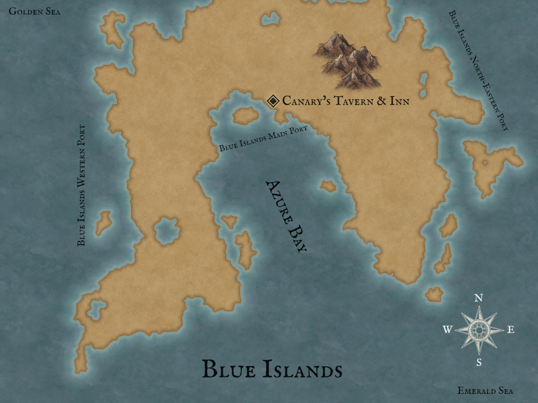 The Blue Islands (or most commonly referred to as Azure Bay), is a group of islands located at the heart of the sea. It's been an open country ever since the reign of King Julien II in The Gilded Empire, and has declared itself as a free nation from that point forward. With community-elected leaders every second leap year, The Blue Islands are considered to be one of the richest lands despite being an open social-constructivist country, due to its geography being in the centre of all trading routes.